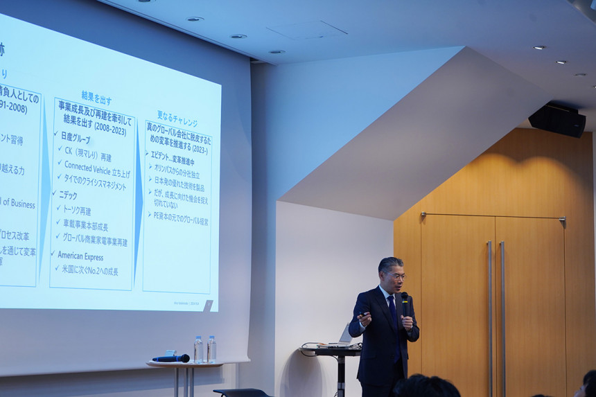 双日(旧 日商岩井)からGE、日産、ニデック、そしてアメリカン・エキスプレスを経て現在エビデントの代表取締役社長を務める吉本氏が、その豊富な経験から語る経営哲学とリーダーシップの真髄。前半では吉本氏のキャリアを振り返る講演、後半はグロービス経営大学院教員の廣瀬との対談を通じて、企業変革の極意や創業者との向き合い方、人材発掘の秘訣まで、ビジネスリーダーとしての深い洞察が語られました。キャリアの転機に立つビジネスパーソンや、組織変革に取り組むリーダーにとって、新たな行動を起こすヒントとなるセミナーの模様をお届けします。