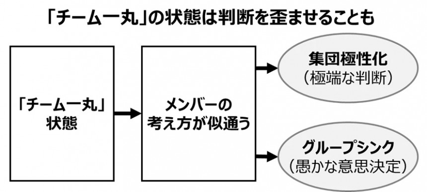 このような「チーム一丸」状態の負の側面を回避するためには、チームが同じ価値観や考え方に一致するだけでなく、メンバーそれぞれの多様な情報や知識を活かすことが重要といえます。