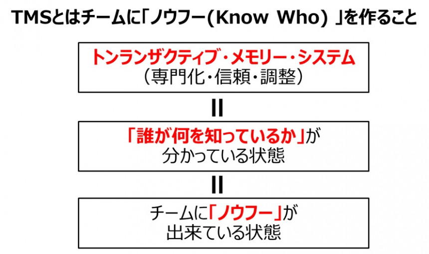 それでは、このようなTMS、すなわち「誰が何を知っているのか」(ノウフー)は、どのように育てることができるのでしょうか?