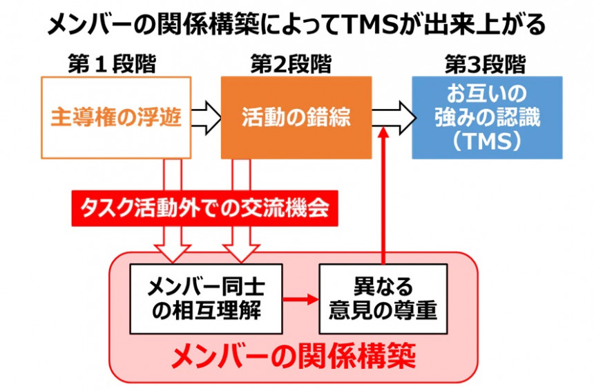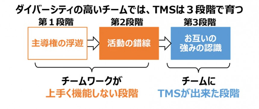 筆者が行った研究では、ダイバーシティの高いチームにおいて、TMS(ノウフー)は3段階のプロセスで作られることが明らかになりました。