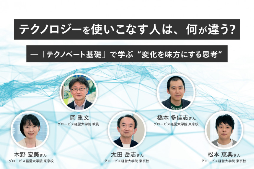 グロービス経営大学院の科目「テクノベート基礎」は、AIなどのデジタル技術を理解し、変化を機会に変える“思考の土台”を育てる場です。単なる知識の習得にとどまらず、「自分や自社の文脈で、どう活かすか?」を問い直しながら、変化に対応できる“基礎体力”を養います。