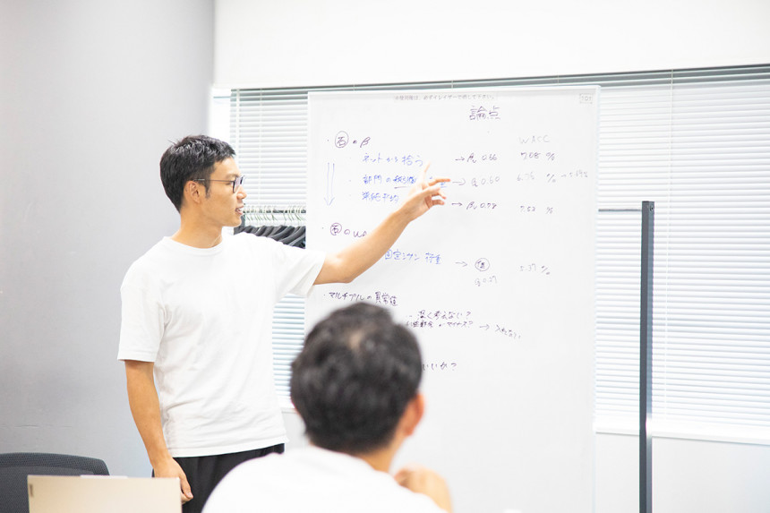 ちなみに、グロービスのカリキュラムは基本・応用・展開とレベル分けされています。レベルが上がるにつれて、クラスメートと喧々諤々意見を戦わせたうえで、ホワイトボードに意見交換のプロセスと結論をクリアにまとめることが求められるようになります。