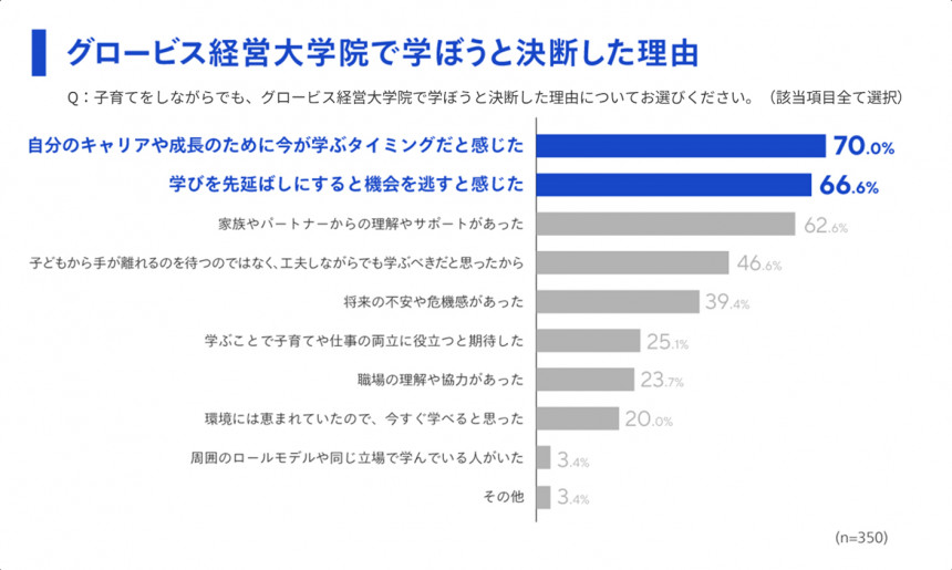 調査対象:グロービス経営大学院 在校生・卒業生(グロービス経営大学院在学中に10歳以下の子育てを経験した男女)