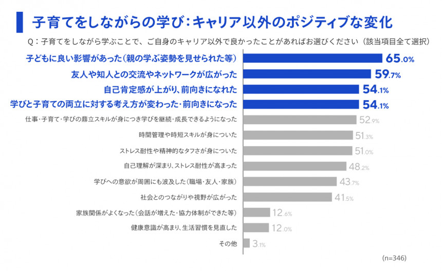 8割以上が「仕事の幅が広がった」、6割以上が「親が学ぶことで子どもへの好影響」を実感 - 【学生コメント】