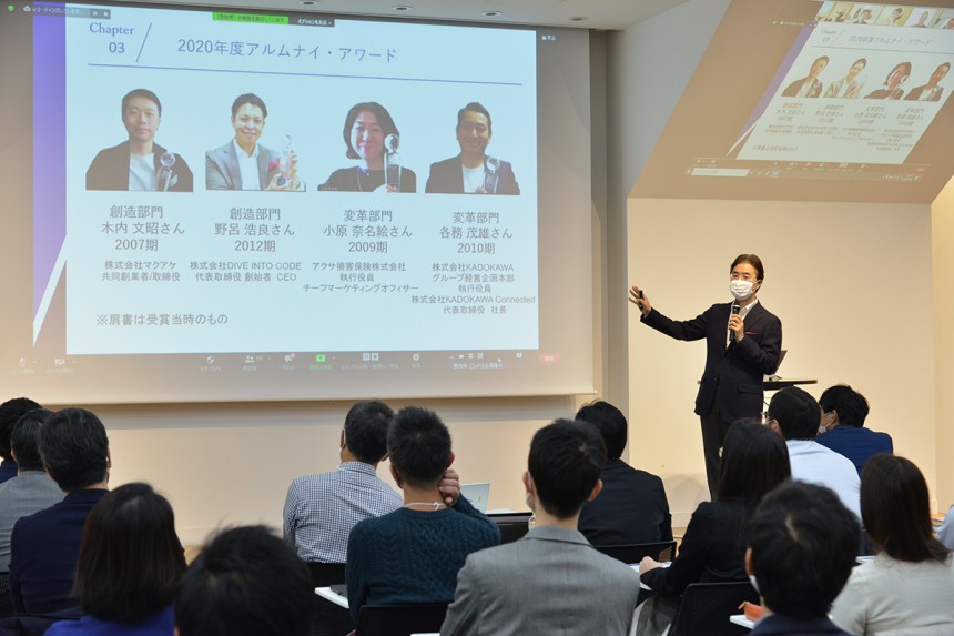 2020年には1,095名の入学者を迎え、卒業生の総数は5,500名を超えました。学生のネットワークも、急速に拡大しており、アルムナイ・アワードの4人の受賞者をはじめとして、多くの卒業生が各界で活躍の場を広げています。今後は、オンラインクラスと通学クラスが融合した「ハイブリッド型MBA」として、より多くの人にグロービスの学びを提供できるよう努力を続けます。