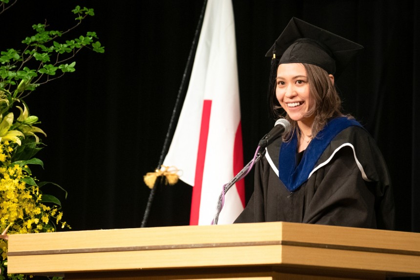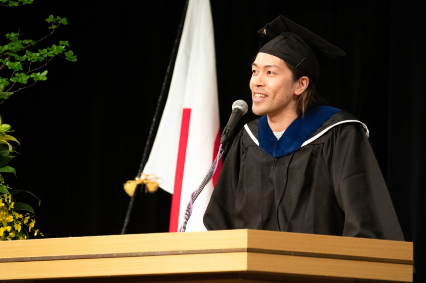「卒業したから何かが変わったという、そんな気持ちは正直ありません。卒業は終わりではなく、志に向けた道半ばであると思っているからです。これからさらに過酷な修羅場が待っていることにワクワクしながら、私は変わらず学びと挑戦を続けます。これらが卒業に際しての私の飾らぬ想いです。これからも何者でもないというまっさらな気持ちとともに、多くを学び、実践して自分の志を貫いていきましょう。私は、皆さん一人一人が抱く志が実現することを心から願っています。これからの人生で、新たな挑戦、そして失敗と成長、その先の志の実現を迎えるために、一緒に前進していきましょう」