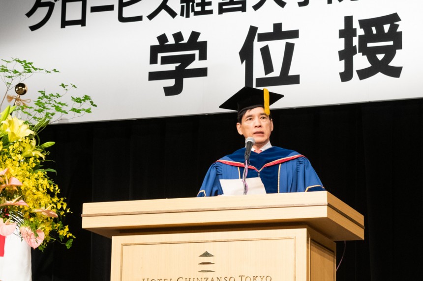 「これからの時代は、テクノロジーの進化が世の中を大きく変えていきます。皆さんは、グロービスで身に付けた経営の能力とテクノロジーの進化を組み合わせながら、常識を打ち破り、自らの可能性を信じて挑戦を続けてください。その先には素晴らしい人生が待っていることでしょう」 「卒業後もグロービスで、皆さんを後押しする多くの機会を活用してください」