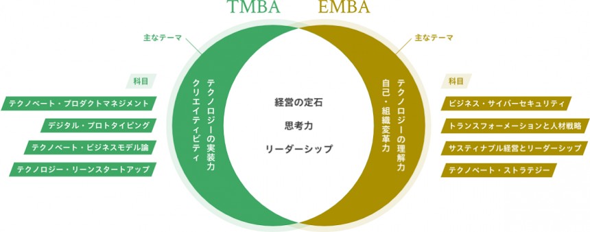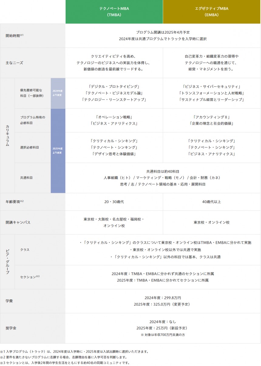 グロービス経営大学院は、2025年度より「テクノベート(*1)MBA(TMBA)」と「エグゼクティブMBA(EMBA)」の2つのプログラムを開講いたします。先行して2024年度4月の日本語MBAプログラム入学期より、東京校とオンライン校において「TMBA」と「EMBA」の2つのトラック(*2)を設け、これからの時代に必要な新しい学びの体系を提供することといたしました。