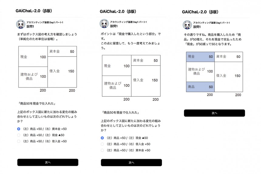 グロービス経営大学院に通う社会人学生は、「GAiChaL-2.0」を用いた復習ツールを使うことで、実践演習を通じたスマートフォンでの学習がいつでもどこでも可能になります。「GAiChaL-2.0」は昨年3月にリリースした「GAiChaL-1.0*1」の進化版で、グロービス経営大学院が長年培ってきた教員と学生の対話メソッドをシナリオとして組み込んだことが最大の特徴です。