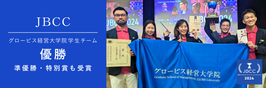 グロービス経営大学院の学生チームが、11月17日に開催された「日本ビジネススクール・ケース・コンペティション2024」(以下JBCC*)で日本全国のビジネススクールから参加した163チームの中から優勝・準優勝・特別賞に輝きました。本選の最終審査に進出した5チーム中3チームがグロービス生、優勝・準優勝、特別賞も受賞する快挙となりました。