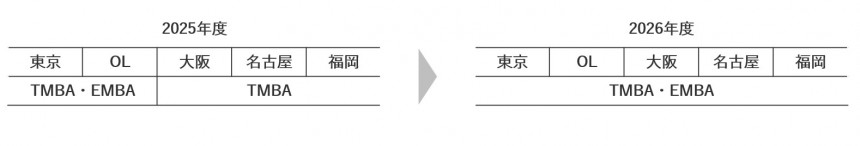 一方、各地域から「同じ地域の仲間とキャンパスでつながりを強めたい」「地域ならではの経営課題に対峙したい」などの声が多く寄せられたことを受け、2026年度より、大阪校・名古屋校・福岡校でもエグゼクティブMBAを開講することを決定しました(図1)。