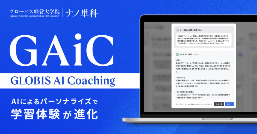 グロービス経営大学院は、2025年7月、新たなAIコーチング機能「GAiC(GLOBIS AI Coaching)」を開発、動画とAIを活用したMBA単位「ナノ単科」において提供を開始しました。