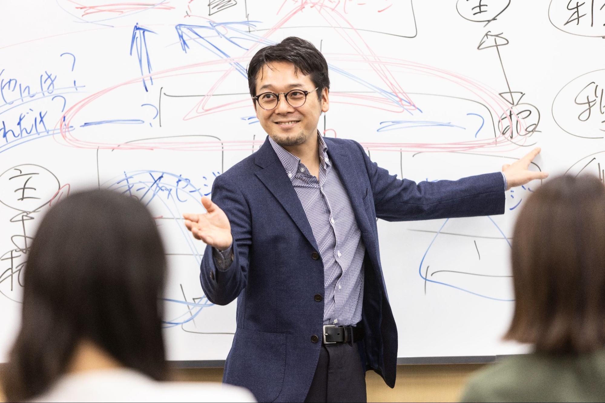 - 体験クラスでは、実際の授業を担当する教員が、人気科目の「クリティカル・シンキング」や「マーケティング・経営戦略基礎」で扱う演習を題材に、クラス全体でディスカッションを行う。