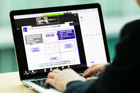 Zoomへの接続は、指定されたURLをクリックするだけです。また、オンラインでのディスカッションが初めての方も、経営学を学んだことがない方も、最初は簡単な演習から教員が丁寧にガイドしながら進めますのでご安心ください。